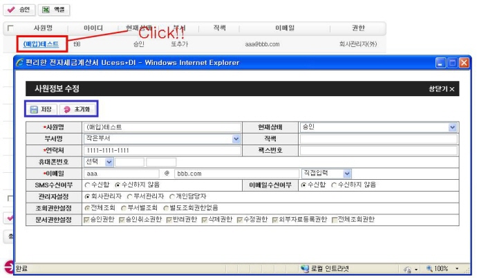 * »ó¼¼Á¤º¸¸¦ È®ÀÎÇÒ »ç¿ø¸íÀ» Ŭ¸¯ÇÕ´Ï´Ù. ¨ç ÀúÀå - »ç¿ø Á¤º¸¸¦ ¼öÁ¤ÇÏ¿© ÀúÀå ÇÒ ¼ö ÀÖ½À´Ï´Ù. ¨è ÃʱâÈ - ÃÖÃÊ »óÅ·ΠµÇµ¹·Á ÁÝ´Ï´Ù. |