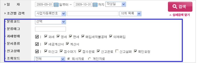 * »ó¼¼Á¶È¸¿±â¸¦ Ŭ¸¯ÇÏ¿© °Ë»ö Á¶°ÇÀ» ¼³Á¤ÇÕ´Ï´Ù. ¨ç °ú¼¼ ÇüŸ¦ ¼±Åà ÇÕ´Ï´Ù. ¨è ¹®¼Á¾·ù¸¦ ¼±ÅÃÇÕ´Ï´Ù. ¨é Á¶È¸¸ðµå¸¦ ¼±ÅÃÇÕ´Ï´Ù. |